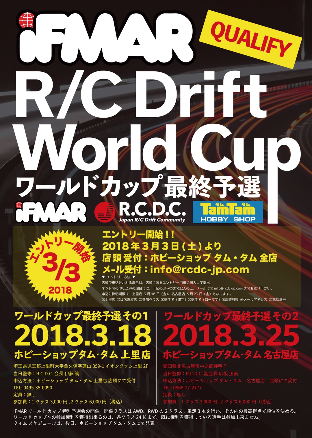 IFMAR ワールド カップ 特別予選会の開催。開催クラスはAWD、RWDの2クラス。